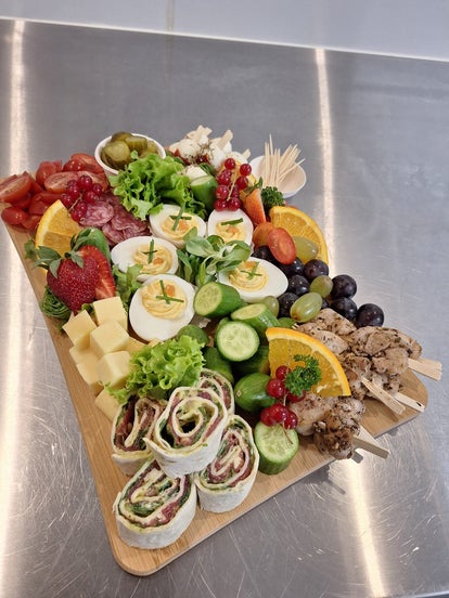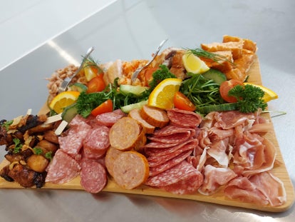 Een plank met diverse lekkernijen zoals: