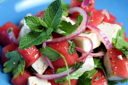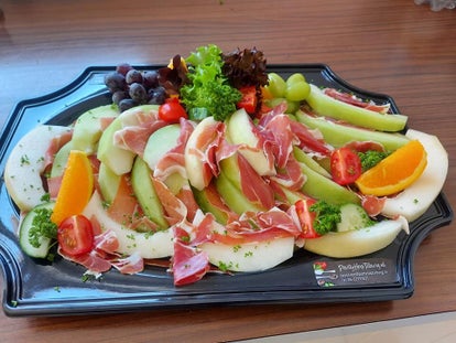 Diverse soorten meloen (indien beschikbaar), italiaanse ham en garnituur.