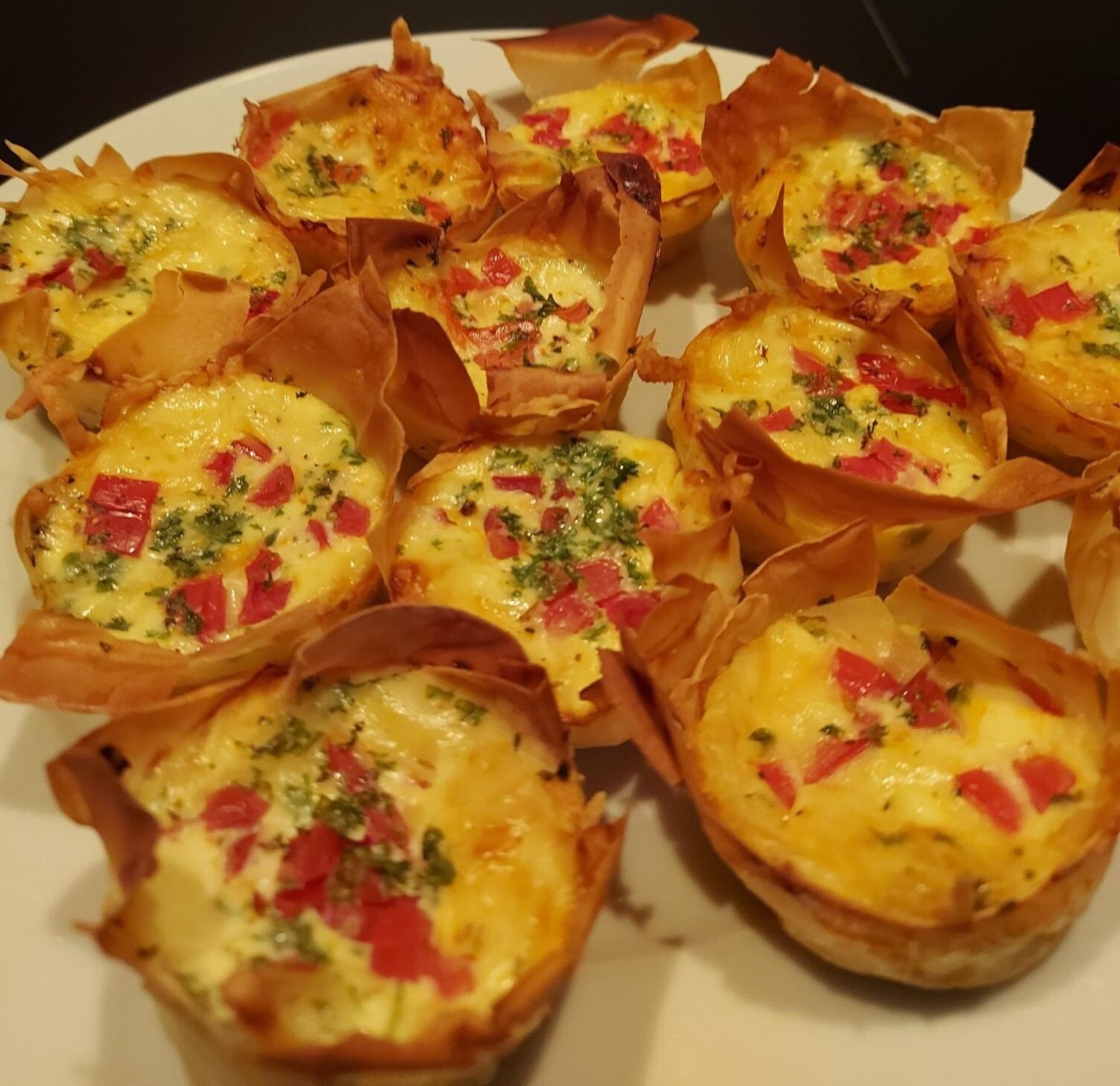 1x quiche met tomaatjes en geraspte kaas.