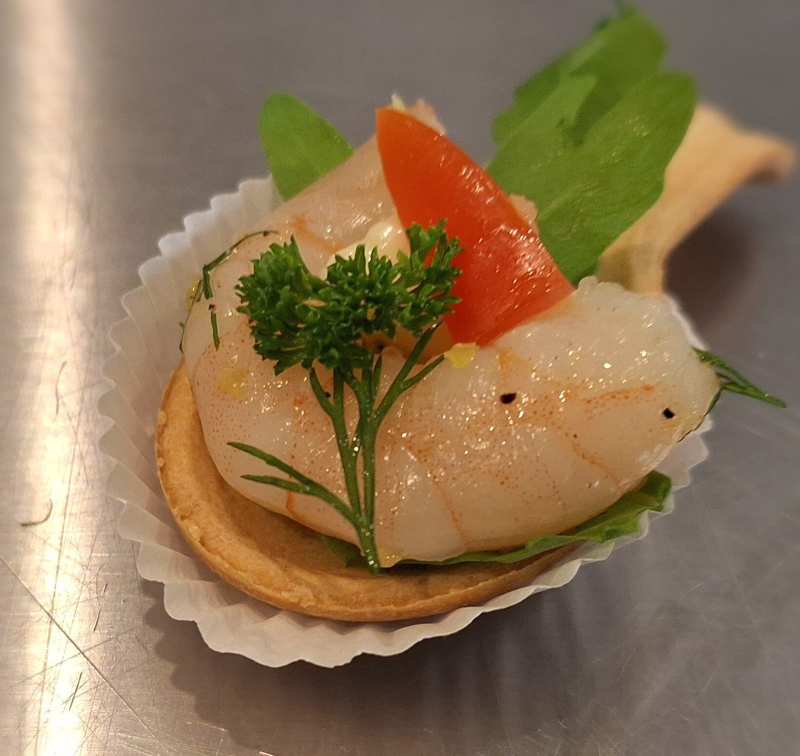 Amuselepel met gemarineerde garnaal en citroenmayonaise