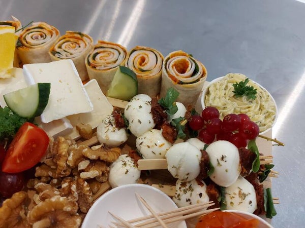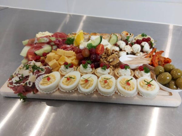 Een plank met diverse lekkernijen zoals: